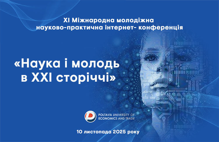 Запрошуємо студентів, аспірантів, докторантів, молодих учених узяти участь у роботі ХІ Міжнародної молодіжної науково-практичної інтернет-конференції «Наука і молодь в ХХІ сторіччі» (до Всесвітнього дня науки в ім’я миру та розвитку, Міжнародного року кооперативів 2025), яка відбудеться у Полтавському університеті економіки і торгівлі 10 листопада 2025 року.
