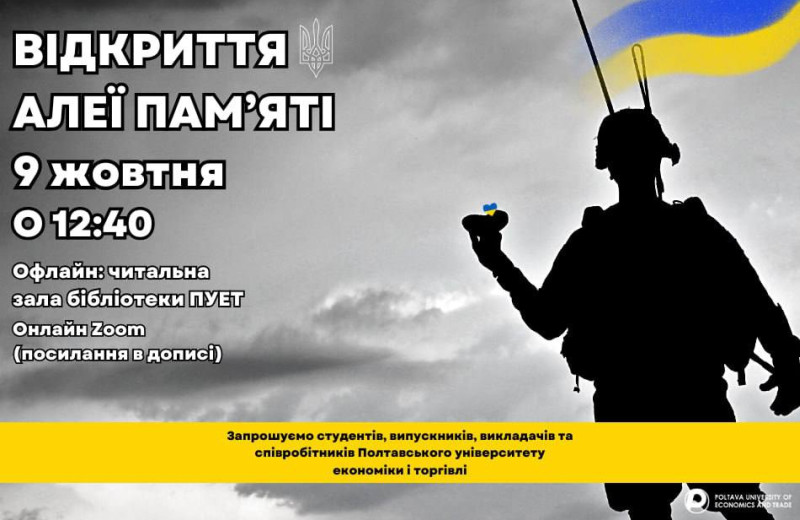 Запрошуємо студентів, випускників, викладачів та співробітників Полтавського університету економіки і торгівлі спільно вшанувати пам’ять випускників і студентів, які загинули на Війні за Незалежність України.