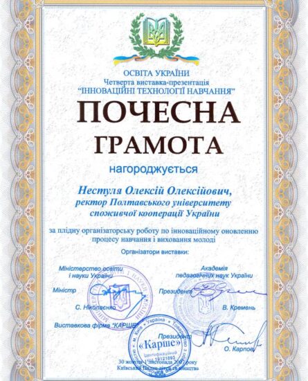 The rule of educational activities of the Poltava University of Economics and Trade is performing this activity based on the latest research achievements of university scientists which are the result of personal research in the field of knowledge that form the basis of training for each area.