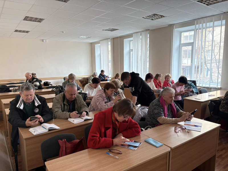 769 слухачів, люди поважного віку 60+, кожного навчального дня в УТВ сідають за парти. 3 пари навчальних занять. Перша обовʼязковий компонент, друга пара – за вибором, третя соціально-адаптивний курс.