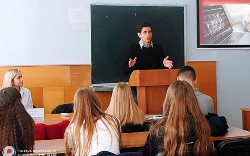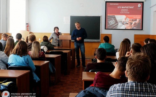 З нагоди свята кафедра маркетингу приймала численних дорогих гостей. Учні 9-11 класів загальноосвітніх шкіл №5 та №9 м. Полтави взяли активну участь в університетській руханці, відвідали Малу академію ПУЕТ та мали можливість цікаво поспілкуватися з успішними випускниками факультету товарознавства, торгівлі та маркетингу Денисом Поліщуком та Оленою Івасенко.