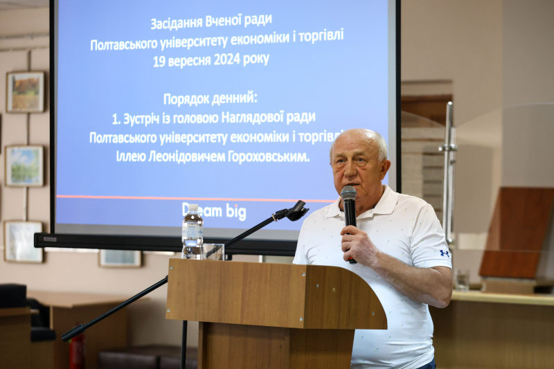 Вчена рада зібралася на зустріч з головою Наглядової ради Полтавського університету економіки і торгівлі Іллею Гороховським.