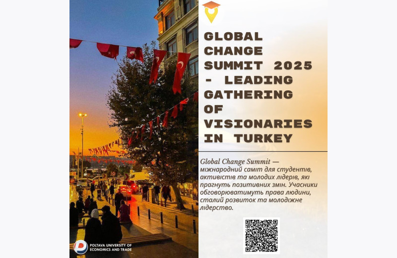 Global Change Summit — міжнародний саміт для студентів, активістів та молодих лідерів, які прагнуть позитивних змін. Учасники обговорюватимуть права людини, сталий розвиток та молодіжне лідерство.