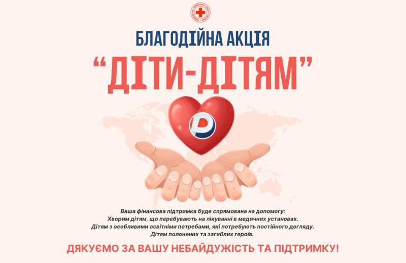 Ми долучаємося до благодійної акції «ДІТИ-ДІТЯМ» Полтавської обласної організації Червоного Хреста України, яка має на меті надання допомоги дітям у складних життєвих обставинах.