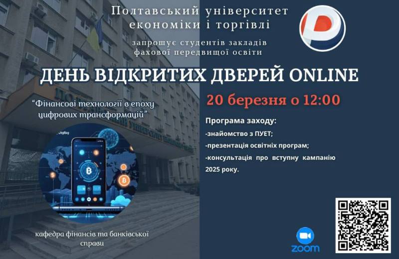 ПУЕТ запрошує на День відкритих дверей online з кафедрою фінансів та банківської справи 20.03.2025 на 12.00