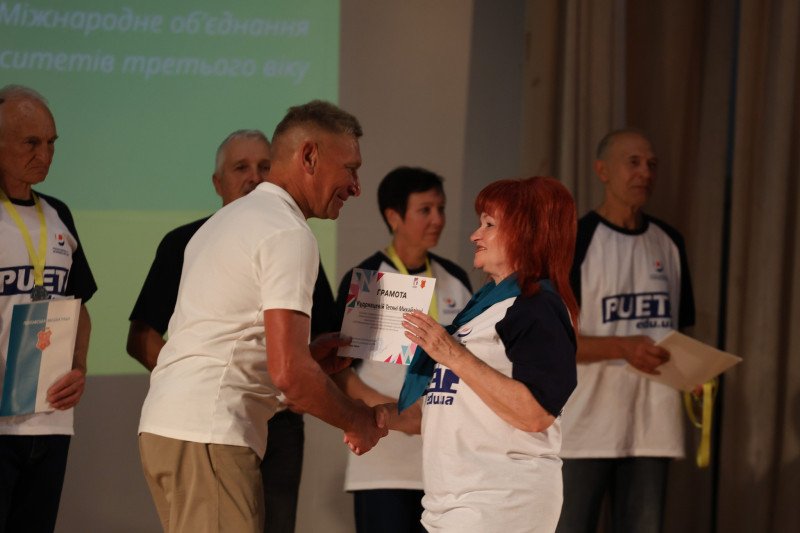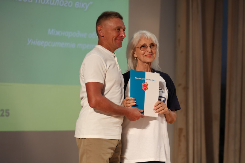 Почесні гості відзначили нагородами найактивніших слухачів проєкту. За багаторічну участь у реалізації проекту, цілеспрямоване здобуття освітніх компетентностей упродовж життя, активну громадянську позицію та з нагоди 90-річчя від Дня народження Грамотою Департаменту освіти і науки Полтавської обласної військової адміністрації нагороджена Сльота Марія Спиридонівна – найстарша слухачка проєкту, яка вже сьомий рік поспіль успішно опановує різні навчальні курси в Університеті третього віку.