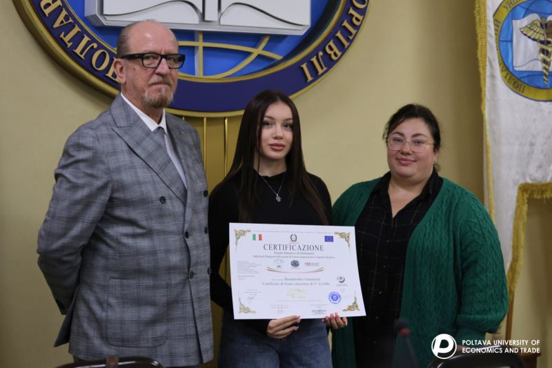 Далі відбулася зустріч зі здобувачами вищої освіти, під час якої учасники літньої практики в Італії отримали міжнародні сертифікати різних рівнів,  що у майбутньому надасть переваги для їх професійного та підвищення щомісячної стипендії за умови участі у програмі наступного року.
