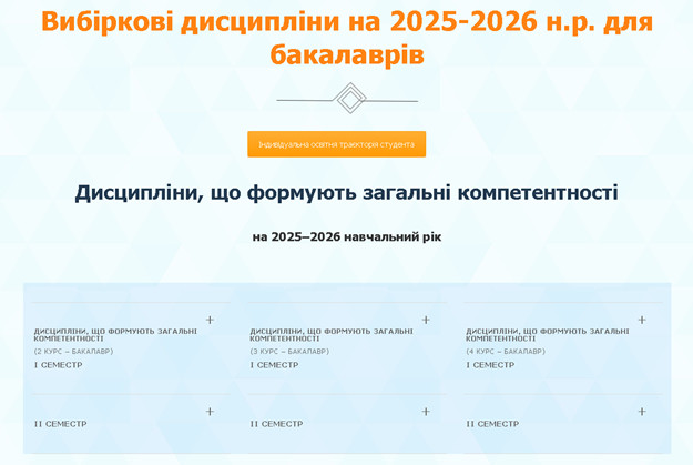 - Шлях для перегляду Головна сторінка сайту університету -> Освіта -> Вибіркові дисципліни -> 2025-2026 -> Вибіркові дисципліни на 2025-2026 н.р. для бакалаврів