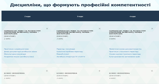 2) переглянути основну інформацію по дисциплінам.