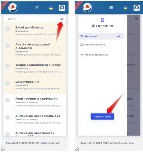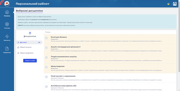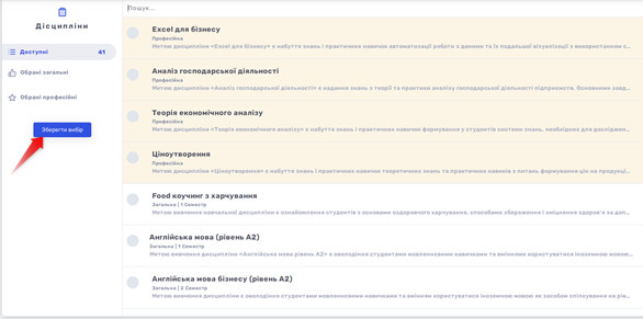 Після збереження обраних дисциплін можна переглянути свій вибір або його змінити.