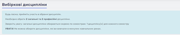 При виборі дисциплін обов’язково звертайте увагу на поставлені вимоги.