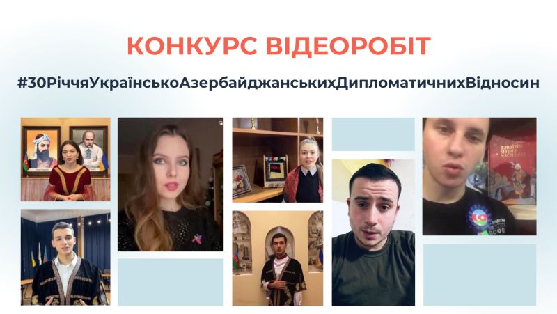 Наприкінці минулого року було оголошено всеукраїнський конкурс відеоробіт серед молоді, присвячений 30-річчю дипломатичних відносин між Україною та Азербайджаном, що відзначалося у 2022 році. Раді повідомити, що конкурс продовжується і у Вас є можливість отримати призи завдяки своїй креативності та цікавості до відносин України зі стратегічним партнером — Азербайджаном, який підтримує територіальну цілісність та суверенітет нашої держави і надає всебічну допомогу українцям.