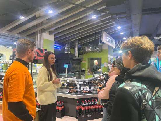 Працівник супермаркету, відповідальний за роботу зі студентами, був гідом. Він акцентував увагу на тому, що цей заклад – один із небагатьох, тематично оформлених. Це сприяє особливій атмосфері. Інтер’єр створено за мотивами творів нашого земляка М. В. Гоголя. Також гід ознайомив студентів з особливостями роботи цього супермаркету, розповів про логістичні процеси постачання сировини, напівфабрикатів, готової продукції.