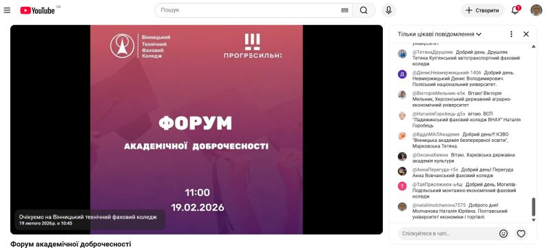 19 лютого 2026 року директор Навчально-наукового інституту забезпечення якості вищої освіти, доцент Олена Гасій та її заступниця, доцент Наталія Молчанова прийняли участь у Форумі академічної доброчесності 2026 від Вінницького технічного фахового коледжу та ГО «Прогресильні».