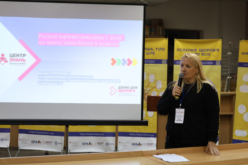 - Наталія Супруненко, в.о. керівника Центру психічного здоров’я КП «Обласний заклад з надання психіатричної допомоги ПОР», розкрила тему «Розлади харчової поведінки у дітей: що мають знати батьки й педагоги».
