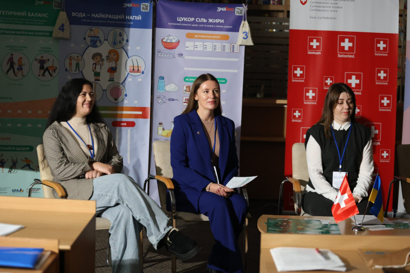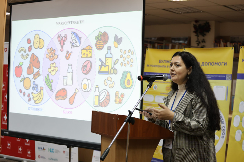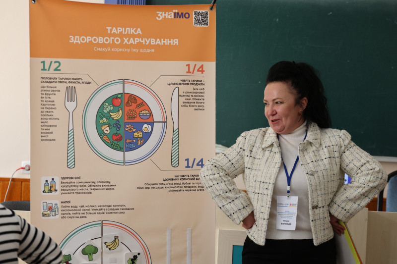 - Таїсія Ярошенко, координаторка напряму «Здорова школа» в Полтавській області українсько-швейцарського проєкту «Діємо для здоров’я», розповіла про «Формування культури здорового харчування як стратегія профілактики неінфекційних захворювань».