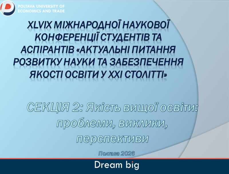 ХLІХ Міжнародна наукова конференція студентів та аспірантів: Секція «Якість вищої освіти: проблеми, виклики, перспективи»