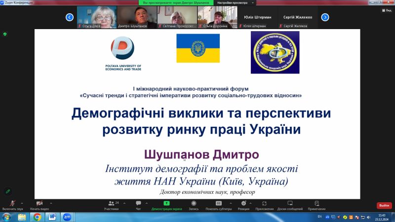 Кафедра управління персоналом, економіки праці та економічної теорії Полтавського університету економіки і торгівлі організувала та провела 23-24 грудня 2024 р. I Міжнародний науково-практичний форум «Сучасні тренди і стратегічні імперативи розвитку соціально-трудових відносин».