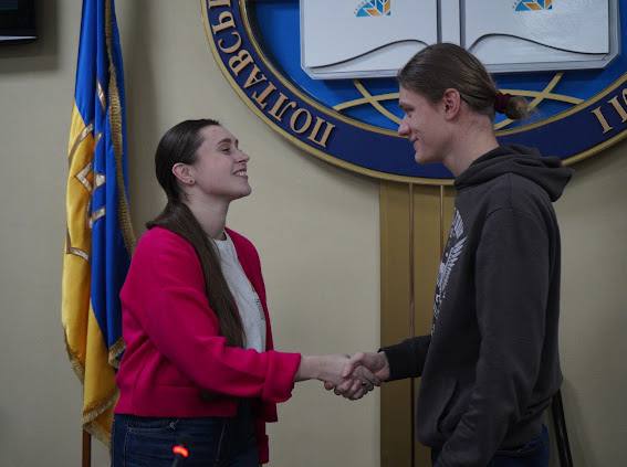 Представники студентського самоврядування ПУЕТ радо зустрічали почесних гостей. Голова Студентської ради Антон Філіпповський відзначив тісну співпрацю університету і асоціації та урочисто вручив подяку Українській асоціації студентів на чолі з президенткою Поліною Гомбалевською за плідну співпрацю та постійну підтримку студентів.