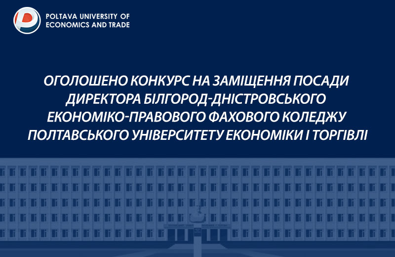 Полтавський університет економіки і торгівлі оголошує конкурс на заміщення посади директора Білгород-Дністровського економіко-правового фахового коледжу Полтавського університету економіки і торгівлі.