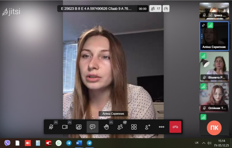 З доповіддю «Історичні події, пов’язані із Міжнародною акцією “16 днів проти насильства”» виступила Віолета Радченко, здобувачка магістерської програми «Організаційна психологія» (ПУЕТ). Вона нагадала, що період між 25 листопада та 10 грудня є символічним інтервалом, який підкреслює зв’язок між подоланням насильства та захистом прав людини. Мета акції — привернути увагу до проблеми насильства й сприяти формуванню культури нульової толерантності насильства у всіх його проявах.