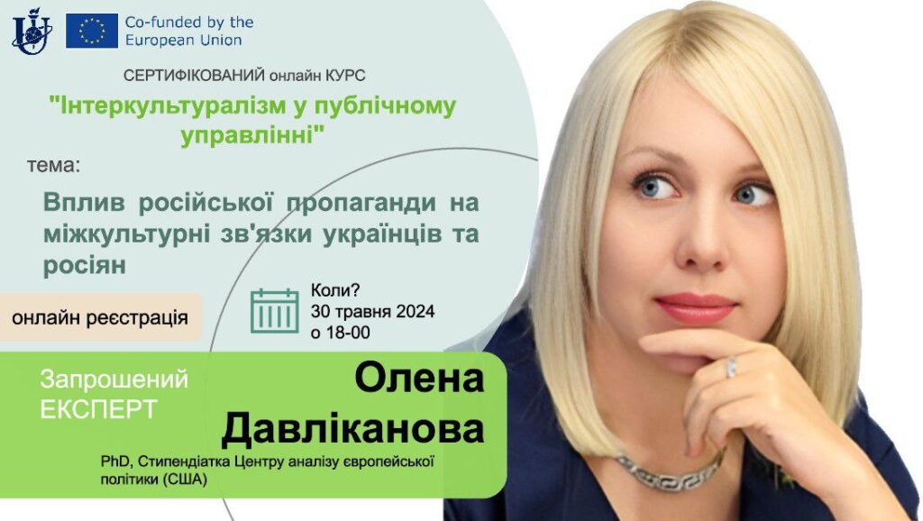 30.05 об 18.00 (Київ) – Олена Давліканова, PhD, Стипендіатка Центру аналізу європейської політики (США). Тема виступу: “Вплив російської пропаганди на міжкультурні зв’язки українців та росіян”
