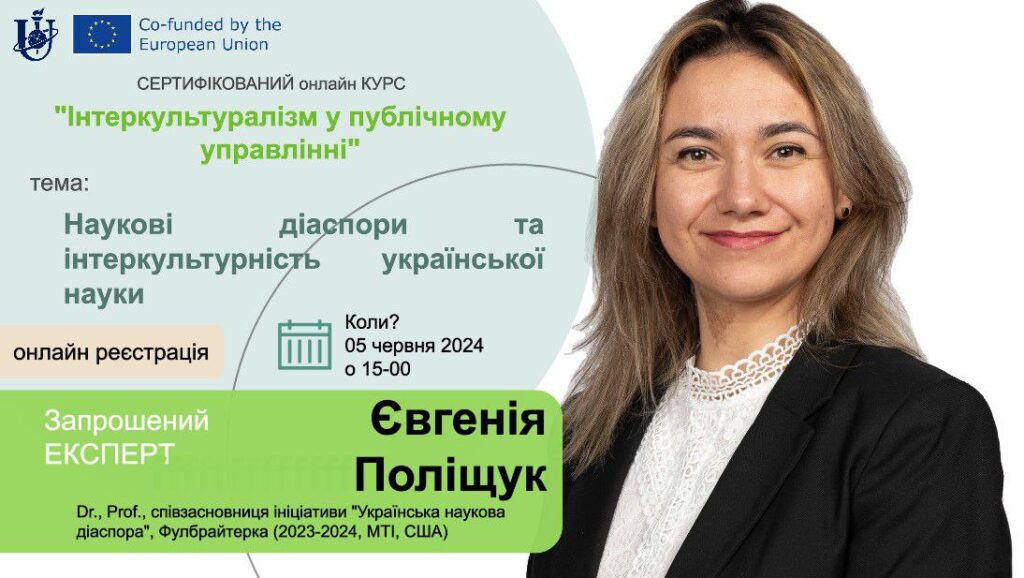 5.06 об 15-00 (Київ) – Євгенія Поліщук, Dr., Prof., співзасновниця ініціативи “Українська наукова діаспора”, стипендіатка Програми Фулбрайта (2023-2024, Массачусетський Технологічний Інститут, США). Тема виступу “Наукові діаспори та інтеркультурність української науки”.