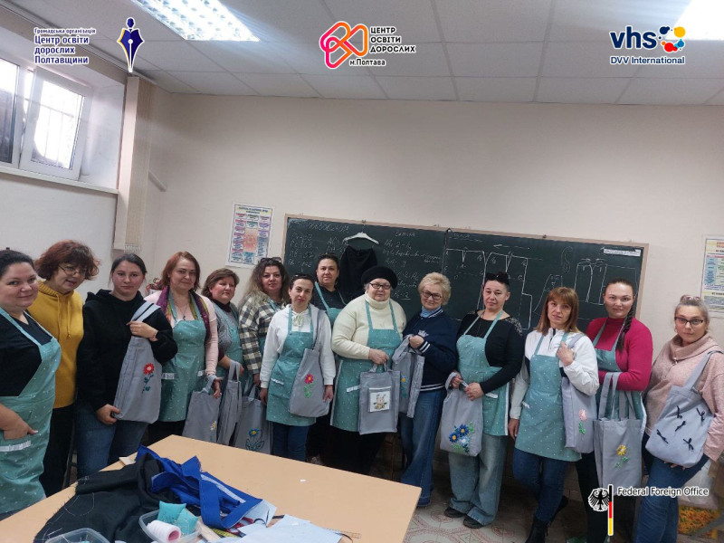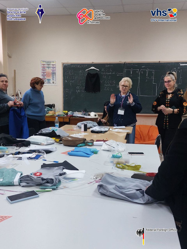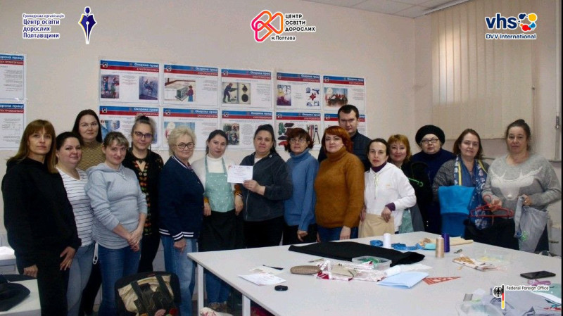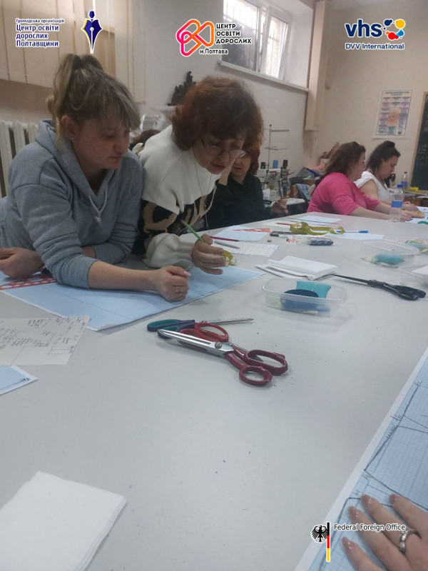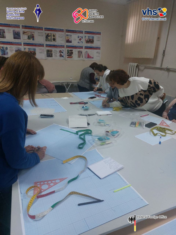 На базі Полтавського університету економіки і торгівлі Громадська організація «Центр освіти дорослих Полтавщини» впродовж березня-квітня реалізувала навчальний курс «Крій та шиття».