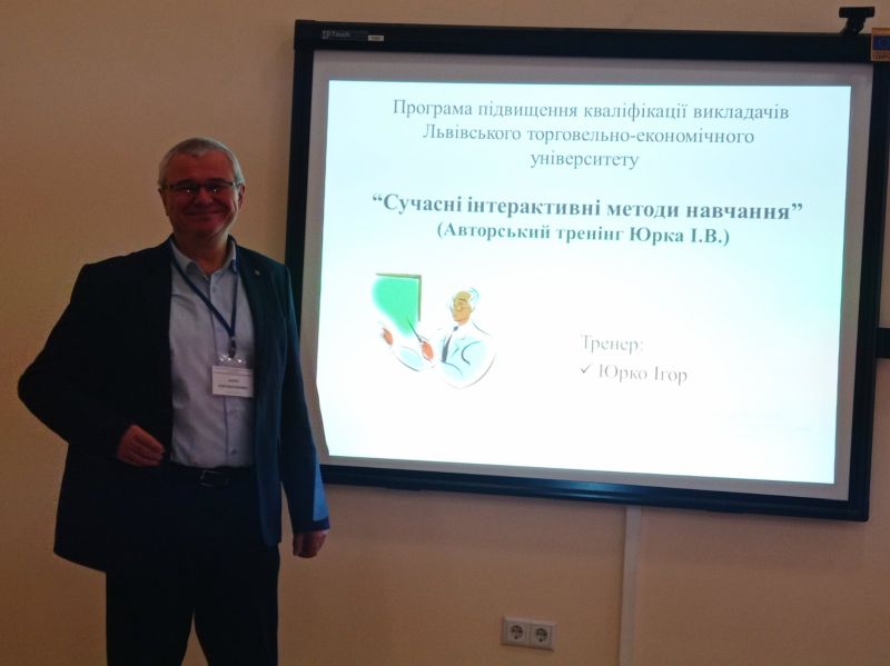 З 11 по 29 листопада відбулися курси підвищення кваліфікації науково-педагогічних працівників Львівського торгово-еокномічного університету на тему «Сучасні інтерактивні методи навчання», викладач к. е. н., доцент Юрко І. В. (3 кредити, 90 годин) за змішаною формою навчання, яка об’єднала проведення занять в аудиторіях ЛТЕУ (тренінги для викладачів та проведення майстер-класів зі студентами) та онлайн.