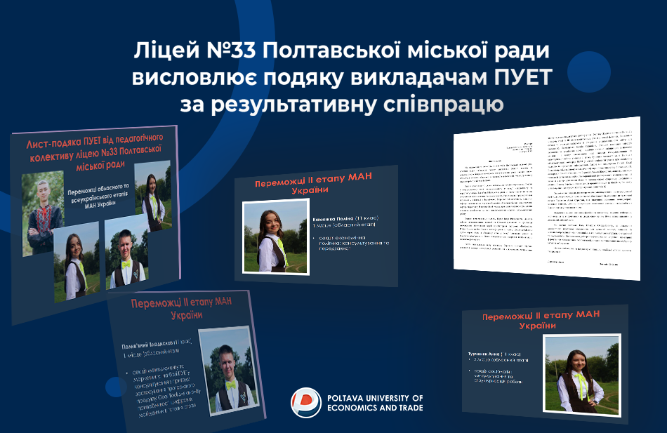 Ліцей №33 Полтавської міської ради висловлює подяку викладачам ПУЕТ за результативну співпрацю