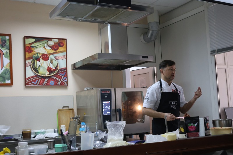13 березня на кафедрі технологій харчових виробництв і ресторанного господарства відбувся унікальний майстер-клас від бренд-шефа Chef University Руслана Вичерова.