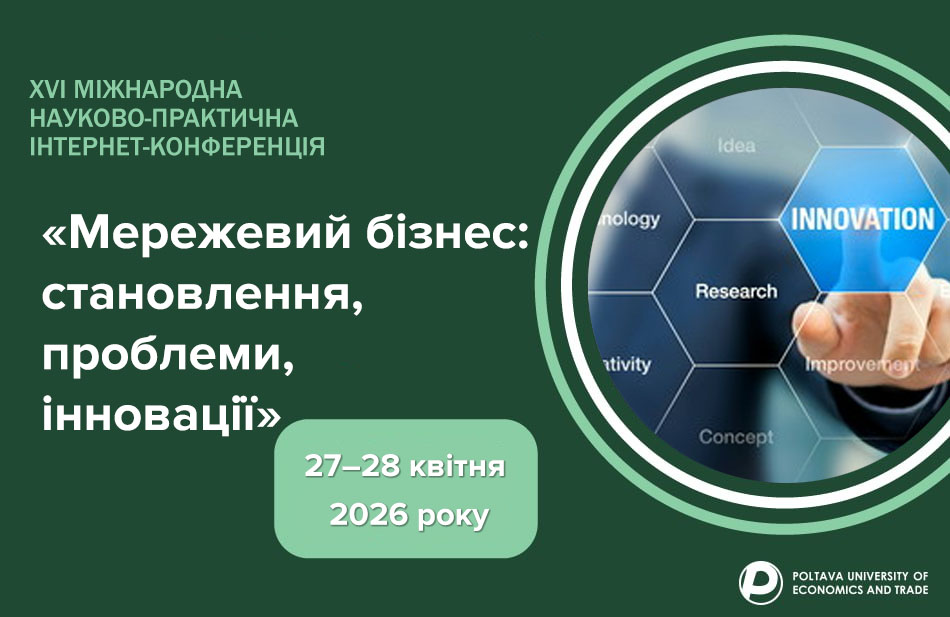 Полтавський університет економіки і торгівлі (ПУЕТ) повідомляє про проведення XVI Міжнародної науково-практичної інтернет-конференції «Мережевий бізнес: становлення, проблеми, інновації», яка відбудеться 27–28 квітня 2026 року.