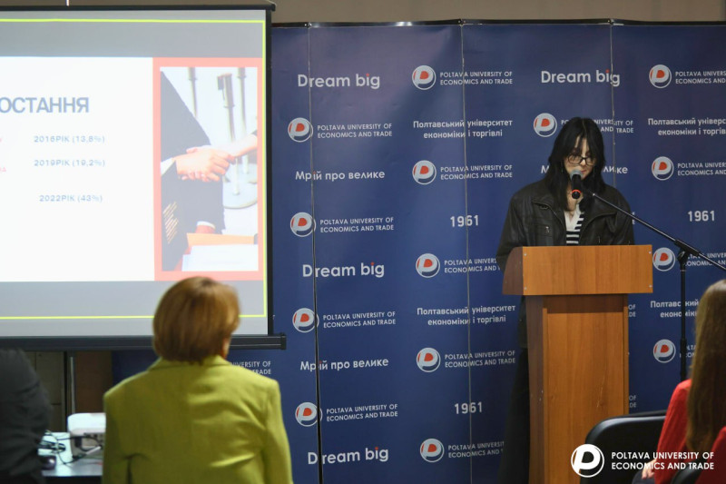 - «Неруйнівний контроль у матеріалознавстві: нові технології у виявленні дефектів матеріалів» (доповідач – Марина ТЕМЧЕНКО, спеціальність Експертиза та митна справа, група ЕМС б-21; науковий керівник – Надія ГНІТІЙ, старший викладач, Полтавський університет економіки і торгівлі);