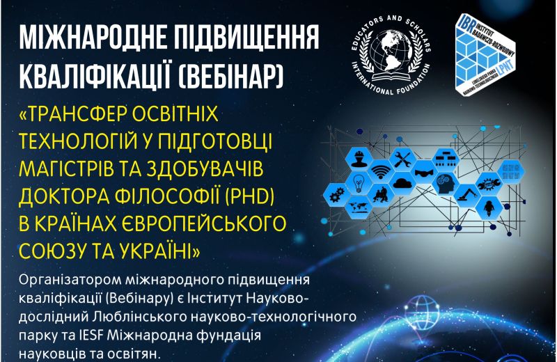 Організатором міжнародного підвищення кваліфікації (Вебінару) є Інститут Науково-дослідний Люблінського науково-технологічного парку та IESF Міжнародна фундація науковців та освітян: