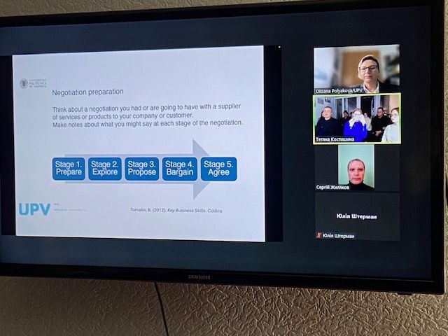 29 листопада 2024 року кафедра управління персоналом, економіки праці та економічної теорії Полтавського університету економіки і торгівлі (Україна) спільно з Політехнічним університетом Валенсії (Іспанія) організували та провели міжнародний тренінг на тему: «English for Professional Communication: Negotiating Across Cultures». Тренінг проводила Оксана Полякова-Нестеренко, доктор філологічних  наук, доцент кафедри прикладної лінгвістики Політехнічного університету (м.Валенсія,Іспанія). На тренінгу також були присутні: завідувач кафедри управління персоналом,економіки праці та економічно теорії Полтавського університету економік і торгівлі Костишина Тетяна Адамівна, та доцент кафедри філології, к.е.н, доцент Стеценко Володимир Валерійович.