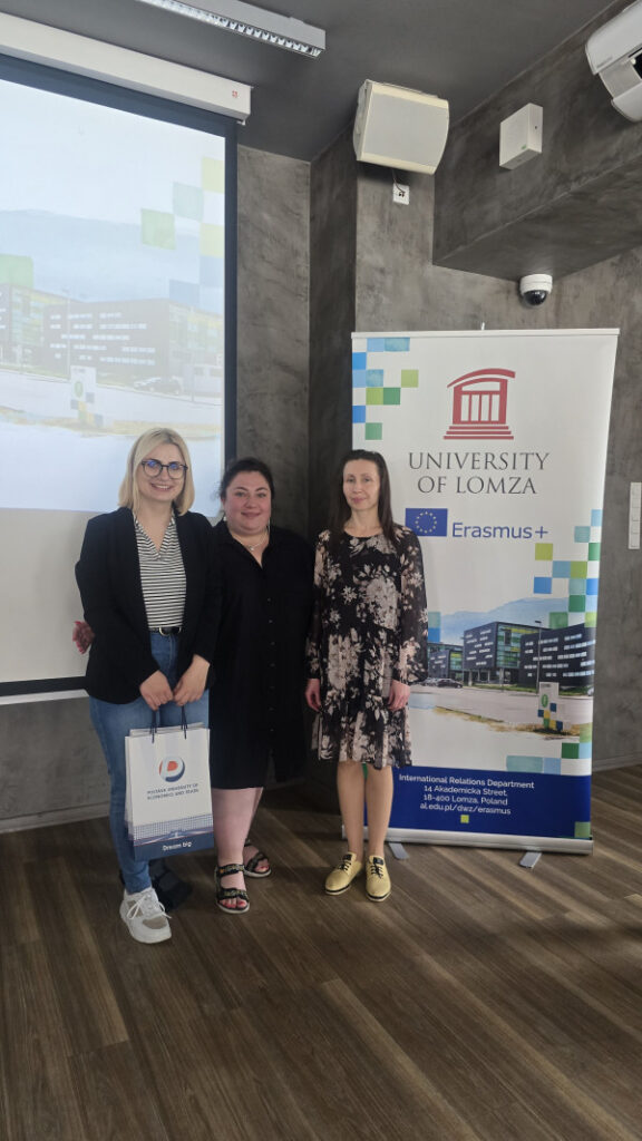 26–30 травня 2025 року делегація ПУЕТ у складі директорки Міжнародного науково-освітнього центру Перегуди Юлії та директорки Навчально-наукового центру підготовки кадрів вищої кваліфікації Гудзь Тетяни відвідала Університет в м. Ломжа (Республіка Польща) та долучилася до 4-го Міжнародного тижня персоналу, який об’єднав 22 представники 11 університетів з 8 країн світу. У заході взяли участь гості з Грузії, Киргизької Республіки, Литовської Республіки, Республіки Албанія, Румунії, Турецької Республіки, України та Японії.