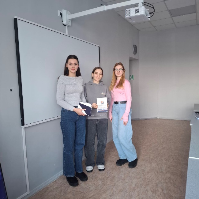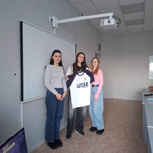За 3 та 2 місця учні отримали блокноти з логотипом ПУЕТ. За 1 місце учениця отримала футболку з логотипом ПУЕТ