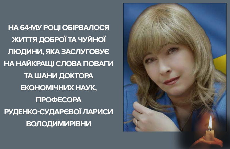 На 64-му році обірвалося життя доброї та чуйної людини, яка заслуговує на найкращі слова поваги та шани доктора економічних наук, професора Руденко-Сударєвої Лариси Володимирівни