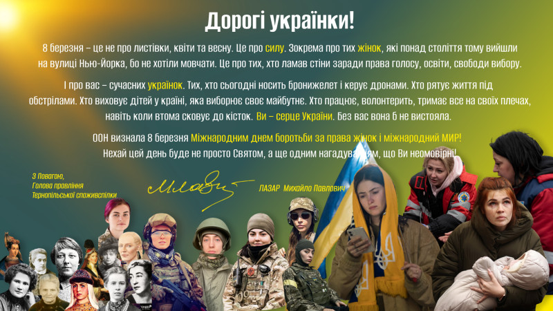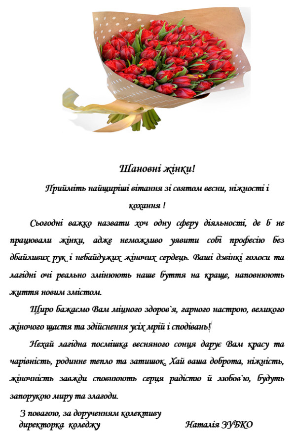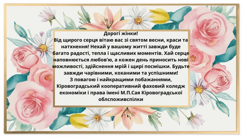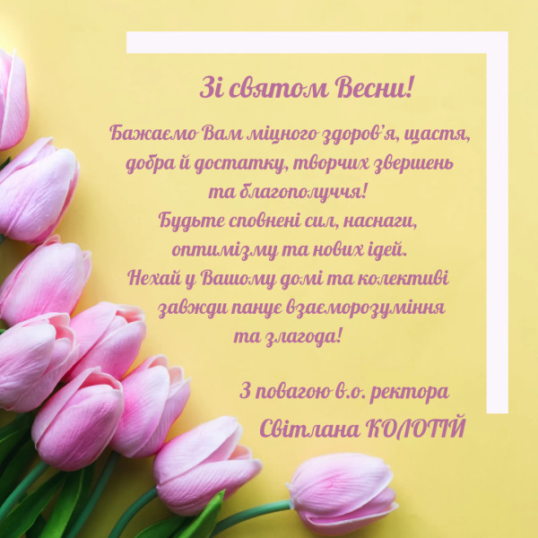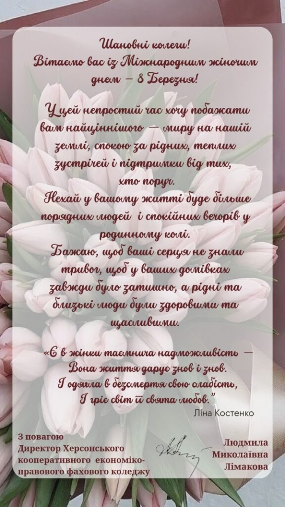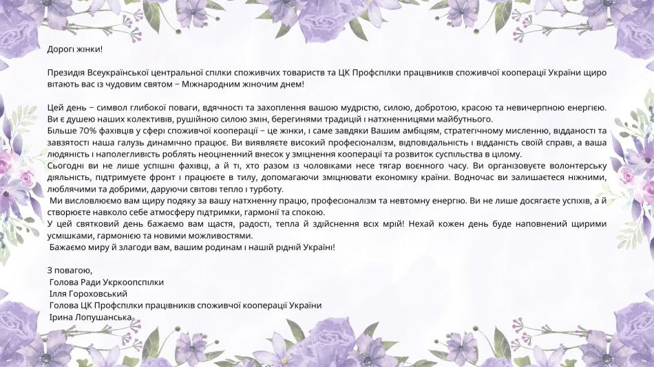 07 Березня 2025 153 Нас вітають! Скопіювати URL-адресу сторінки Шановні жінки! Найтеплішими словами я хочу привітати Вас зі святом 8 березня! Усе найдорожче та найпрекрасніше, що є у нашому житті, пов’язане саме з Вами. Ви – наша опора та надійний тил задля якого, ми – чоловіки, здатні на будь-які вчинки та – 1