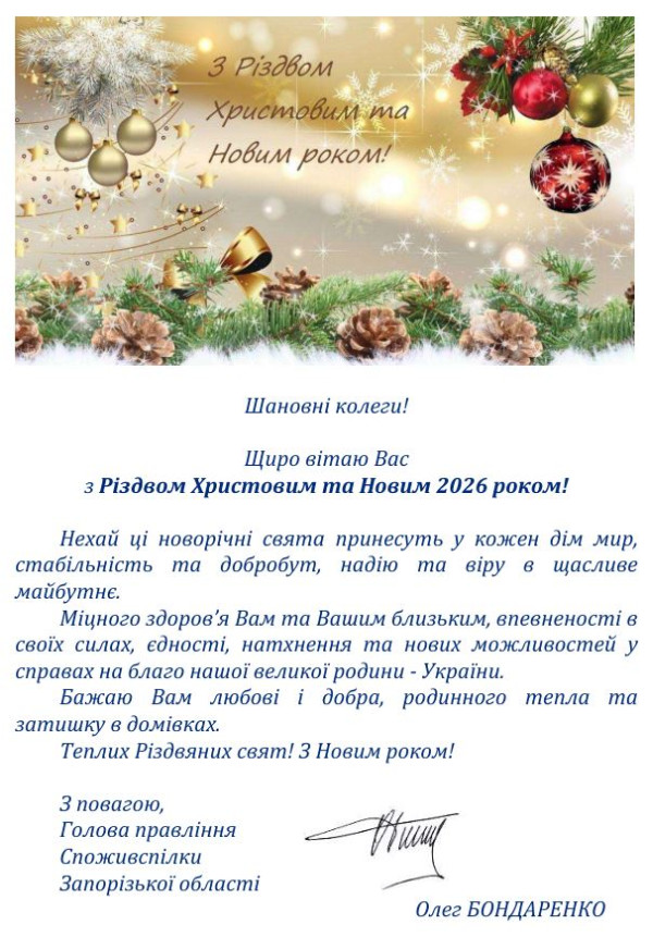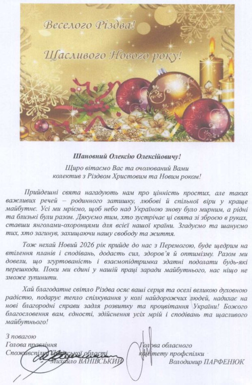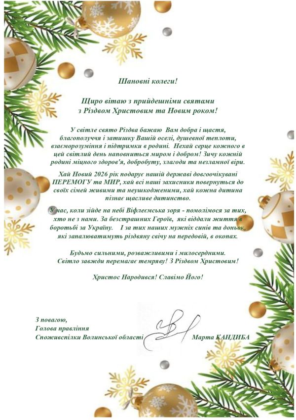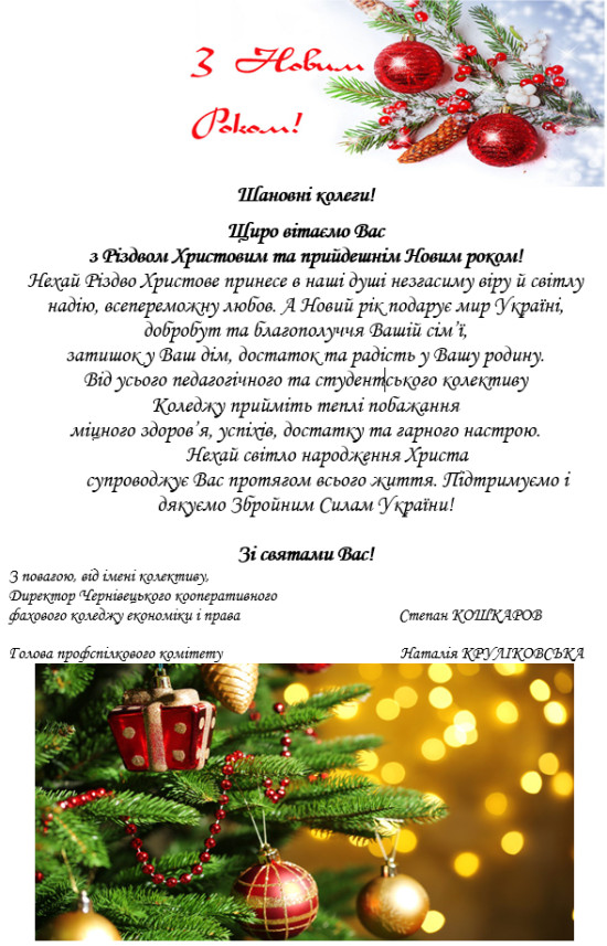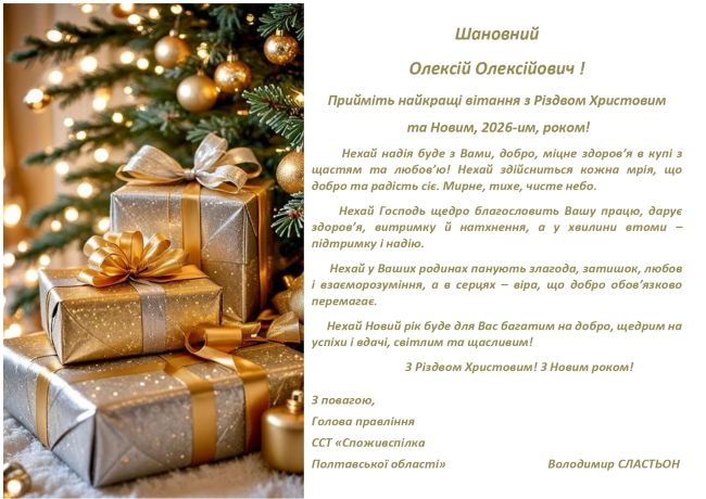 Вітання від ректора ПУЕТ з Різдвом і Новим роком