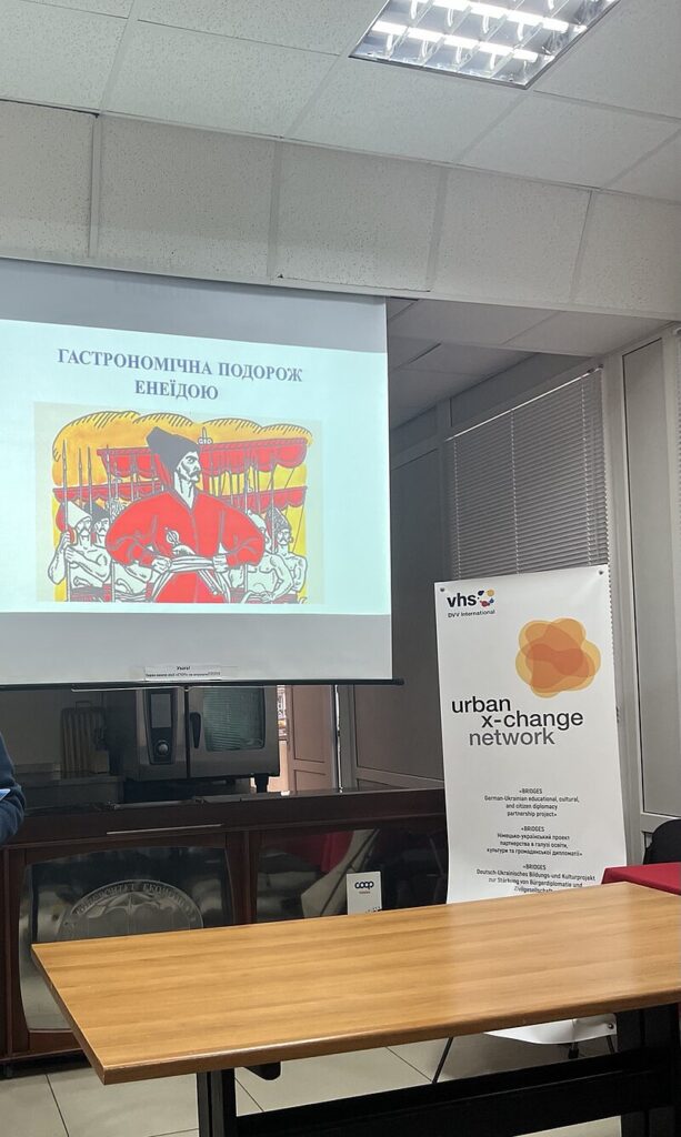Спраглі до знань учасники заходу відкрили для себе багато нового про гастрономічні вподобання українців доби створення «Енеїди». Поетичні рядки, сповнені соковитого українського слова, ожили на зустрічі: «П’ять казанів стояло юшки, А в чотирьох були галушки. Борщу трохи було не з шість. Баранів тьма була варених, Курей, гусей, качок печених… І ласощі все тільки їли – Сластьони, коржики, стовпці, Варенички пшеничні білі, Пухкі з кав’яром буханці…»