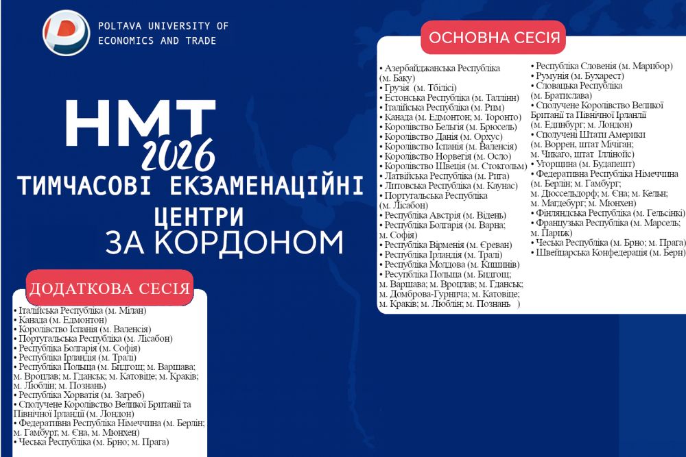 НМТ 2026: ТИМЧАСОВІ ЕКЗАМЕНАЦІЙНІ ЦЕНТРИ за кордоном