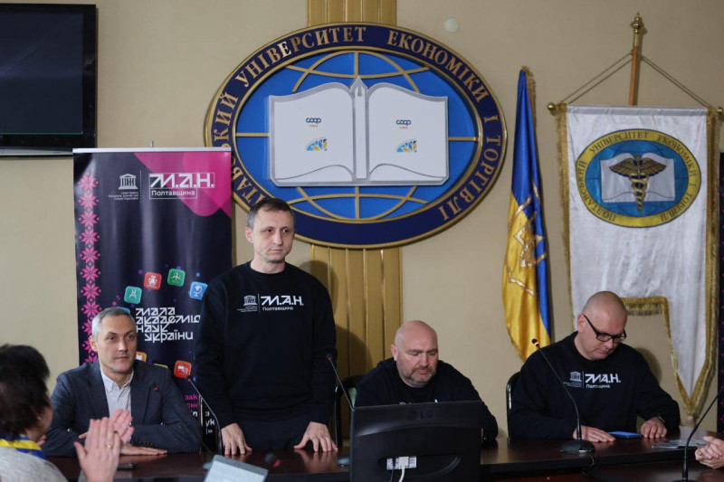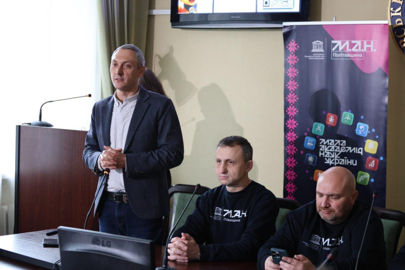Привітали учасників конкурсу Антон Чубенко – заступник начальника Полтавської обласної військової адміністрації, Євген Кончаковський – директор Департаменту освіти і науки Полтавської обласної військової адміністрації, Олександр Манжура – проректор з науково-педагогічної роботи, Валерій Биков – очільник Полтавської обласної Малої академії наук учнівської молоді.