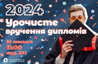 Шановні випускники! Полтавський університет економіки і торгівлі щиро запрошує вас на урочисте вручення дипломів 2024! Це святковий момент, коли ваші зусилля, відданість та наполегливість отримують заслужену відзнаку. Дата: 10 лютого 2024 року Час: 11:00 Місце: 302 аудиторія Нехай цей день стане для вас символом нових початків і безмежних можливостей! Приходьте разом зі своїми близькими, щоб […]