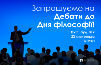 Запрошуємо студентів, викладачів і усіх бажаючих стати глядачами видовищного дійства – студентських дебатів до Дня філософії! Дві команди будуть змагатися, доводячи саме свою правоту, і нехай переможе найпереконливіший! Що: дебати на тему «Багаті шкодять довкіллю більше, ніж бідні» Де: Полтавський університет економіки та торгівлі, аудиторія 317 Коли: 22 листопада 2023 року, 12:40 Вхід вільний! Телефон […]
