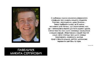 З глибоким сумом колектив університету сповіщає про смерть нашого студента. Раптово, несподівано, дуже болісно…