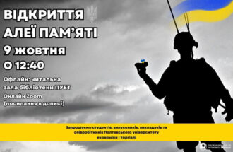09 жовтня 2025 року в Полтавському університеті економіки і торгівлі відбулося відкриття АЛЕЇ ПАМ’ЯТІ випускників і студентів, які віддали життя за свободу і незалежність України. Це перший крок у меморіалізації подвигу наших героїв. АЛЕЯ ПАМ’ЯТІ розміщена на офіційному вебсайті університету, що надає можливість кожному, з понад 120 тисячної родини випускників і студентів, зазирнувши в очі […]