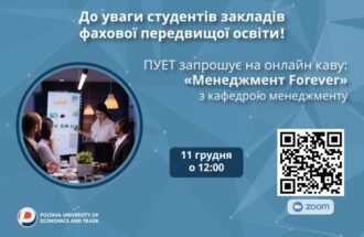 Минулого тижня Полтавський університет економіки і торгівлі продовжив продовжив онлайн марафон «Про вищу освіту» презентаціями Топ-спеціальностей для студентів закладів фахової передвищої освіти. До заходу активно долучаються студенти Полтавської, Житомирської, Дніпропетровської, Одеської, Сумської, Харківської, Херсонської, Черкаської, Чернігівської областей та інші. 3 грудня пройшла зустріч завідувачки кафедри готельно-ресторанної та курортної справи Наталії Рогової, гаранта бакалавського рівня вищої освіти ОП […]