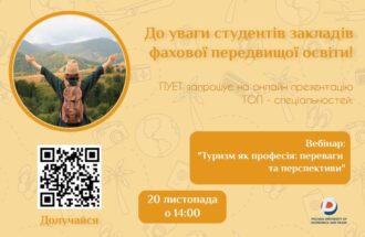 ПУЕТ запрошує на онлайн презентацію ТОП – спеціальностей. Вебінар “Туризм як професія: переваги та перспективи” Коли? 20 листопада 2024 о 14:00 Де? Zoom конференція https://us02web.zoom.us/j/89762803595?pwd=0fB7JC2Tob4z4xDQwzqfceUN8oeUux.1 Ідентифікатор конференції: 897 6280 3595 Код доступу: 2024