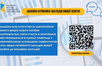 Національне агентство із забезпечення якості вищої освіти України запрошує вас узяти участь в опитуванні, яке проводиться в рамках співпраці з Європейською асоціацією університетів (EUA) щодо готовності закладів вищої освіти до кризових ситуацій. Метою цього опитування є: вивчити досвід управління ЗВО в умовах криз та оцінити ефективність стратегій, які використовуються ЗВО для подолання кризових ситуацій. Аналіз […]